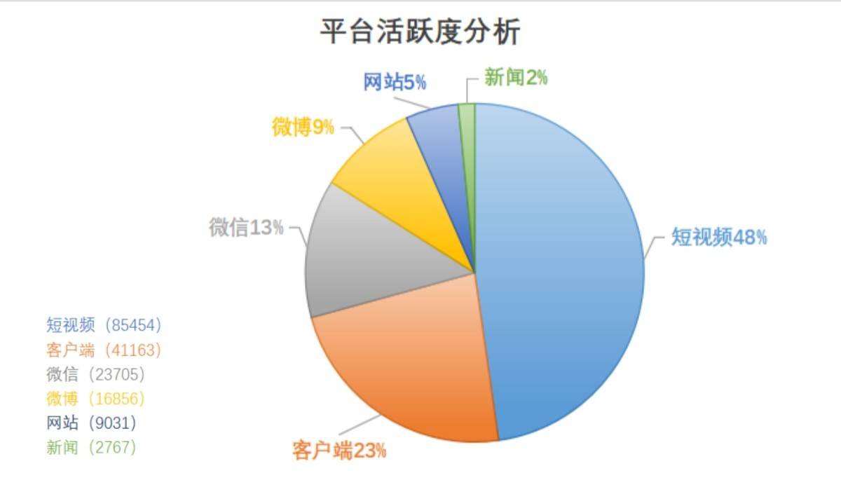 该事务收集消息总量共计17万余条。此中短视频8万5千余条、客户端4万1千余条、微信2万3千余条成为热度最高渠道。