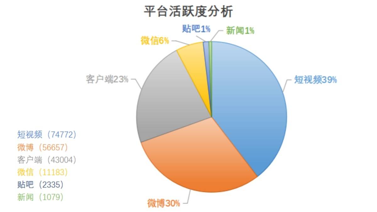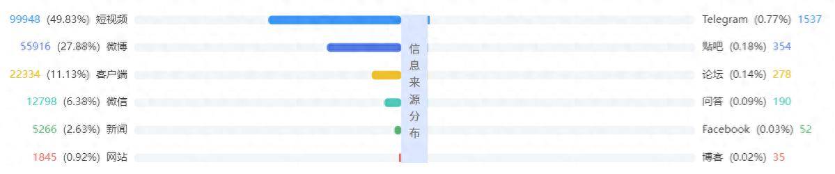 该事务收集消息总量共计18万余条。此中短视频7万4千余条、微博5万6千余条、客户端4万3千余条成为热度最高渠道。