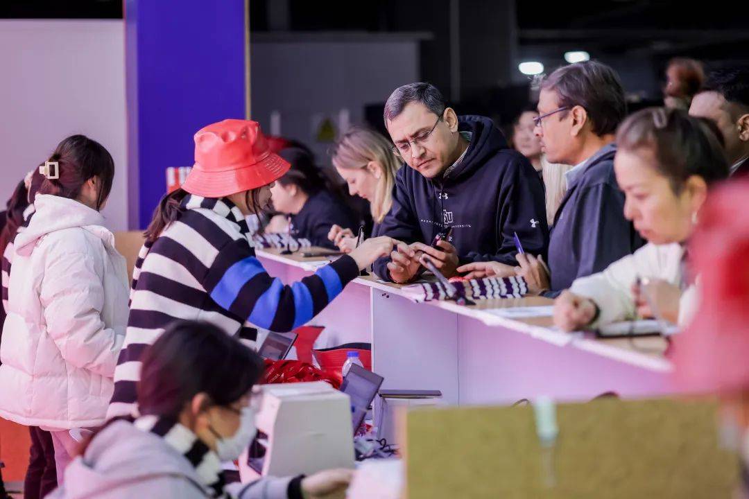 现场潮涌而来的携分歧类型订单的专业买家们,从国内买家到海外客户,从购物核心/商超、专业市场买家、糊口体例调集店担任人,到出名服拆企业品牌采购、设想师,再到电商/跨境电商平台、从播达人……也是这幅画卷上缤纷新鲜的妆点,让这场开年针织嘉会更显丰盈、更具活力。