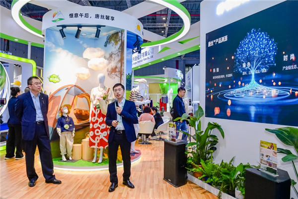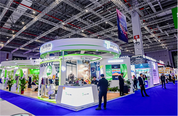 步入唐丝™沉浸式展区,科技取天然共生的美学贯穿一直。由唐丝™ReVisco™轮回再生纤维编织的再生展区,注释着废旧棉纺品沉获重生的艺术言语;唐丝™环保彩纤EcoColor打制的立体安拆以色彩演绎四时更迭,唐丝™EcoTang™展区内,每件服拆都能借逃溯视角,一展全财产链的故事……