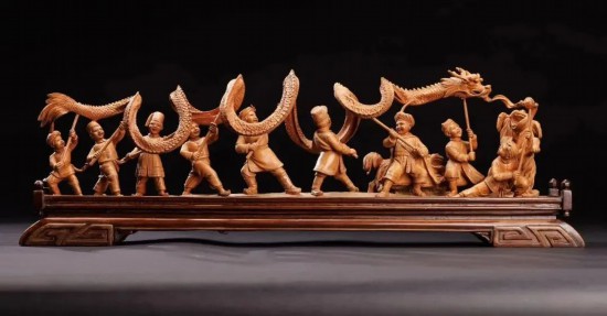 黄杨木雕发源于20世纪30年代的上海徐汇区,接收中国保守雕镂技法,融合雕塑的剖解、比例、布局等手法,构成奇特的海派工艺气概。活泼表示上海胡衕糊口风情和日常糊口,也有平易近间故事等题材。